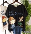 PKOGF夏季新款加大码女式T恤休闲宽松卡通印花图案加大码短袖上衣